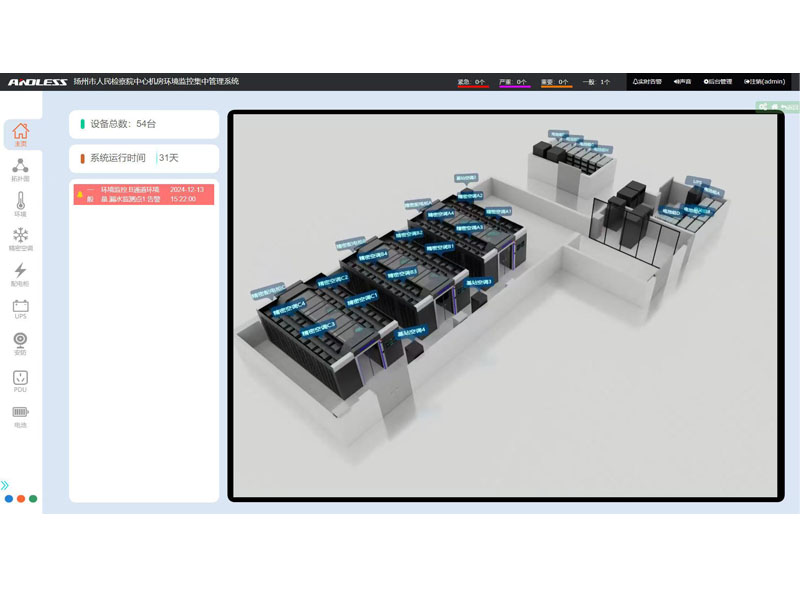 近期有幸為江蘇省某市檢察院提供三套安德力士品牌微模塊機房設備,涉及系統(tǒng)有:UPS不間斷電源、精密空調(diào)、機柜、配電、動力環(huán)境監(jiān)控等系統(tǒng);涉及主要設備有:UPS主機(30KVA、40KVA、300KVA)、鉛酸蓄電池(100AH64節(jié)、200AH128節(jié)、250AH320節(jié))、精密空調(diào)(行級25KW12臺、基站12.5KW4臺)、機柜51套,現(xiàn)已全部安裝調(diào)試完成。